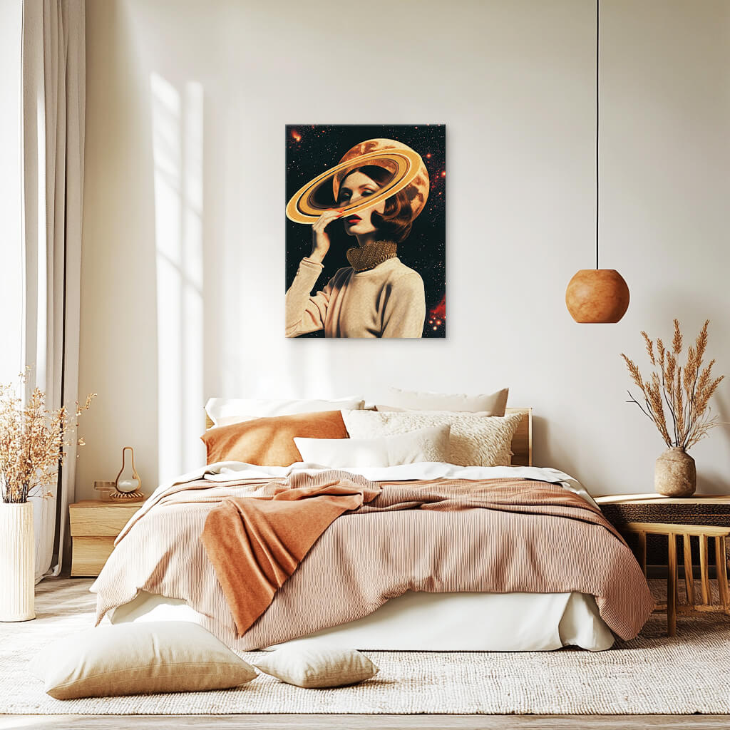 A woman’s face dissolves into the cosmos, her form flickering between the stars. She is not merely watching the universe—she is becoming it.