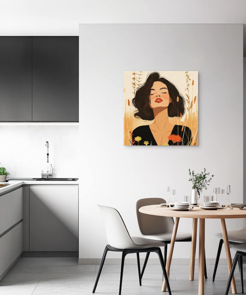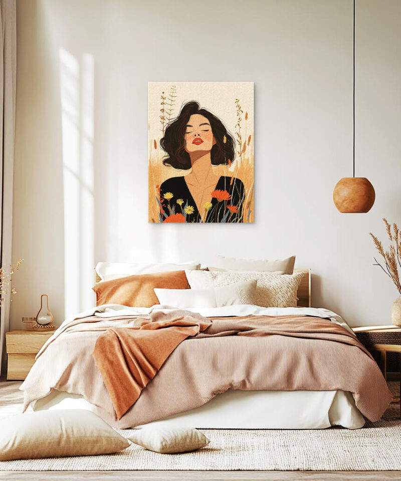 A woman’s gaze, calm and knowing, is framed by the warmth of the land. She carries the wisdom of generations, her presence grounding yet infinite.