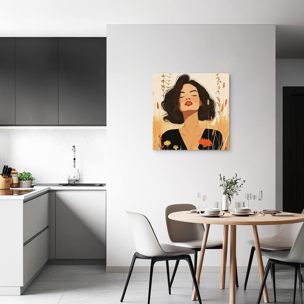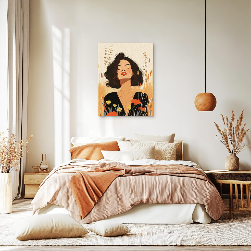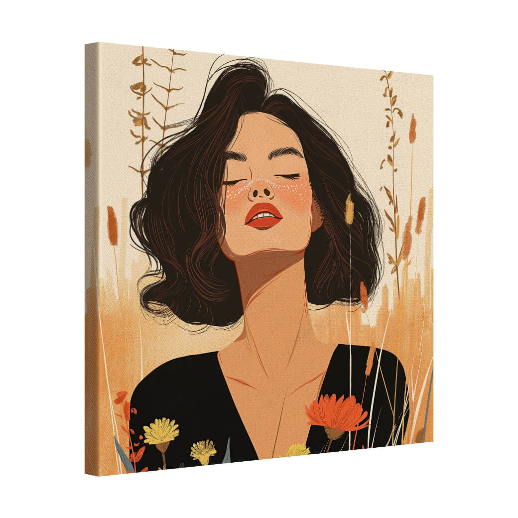 A woman’s gaze, calm and knowing, is framed by the warmth of the land. She carries the wisdom of generations, her presence grounding yet infinite.