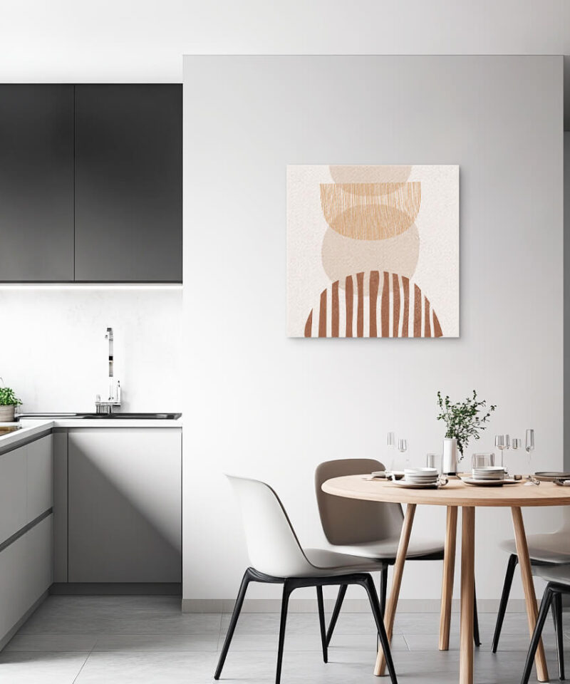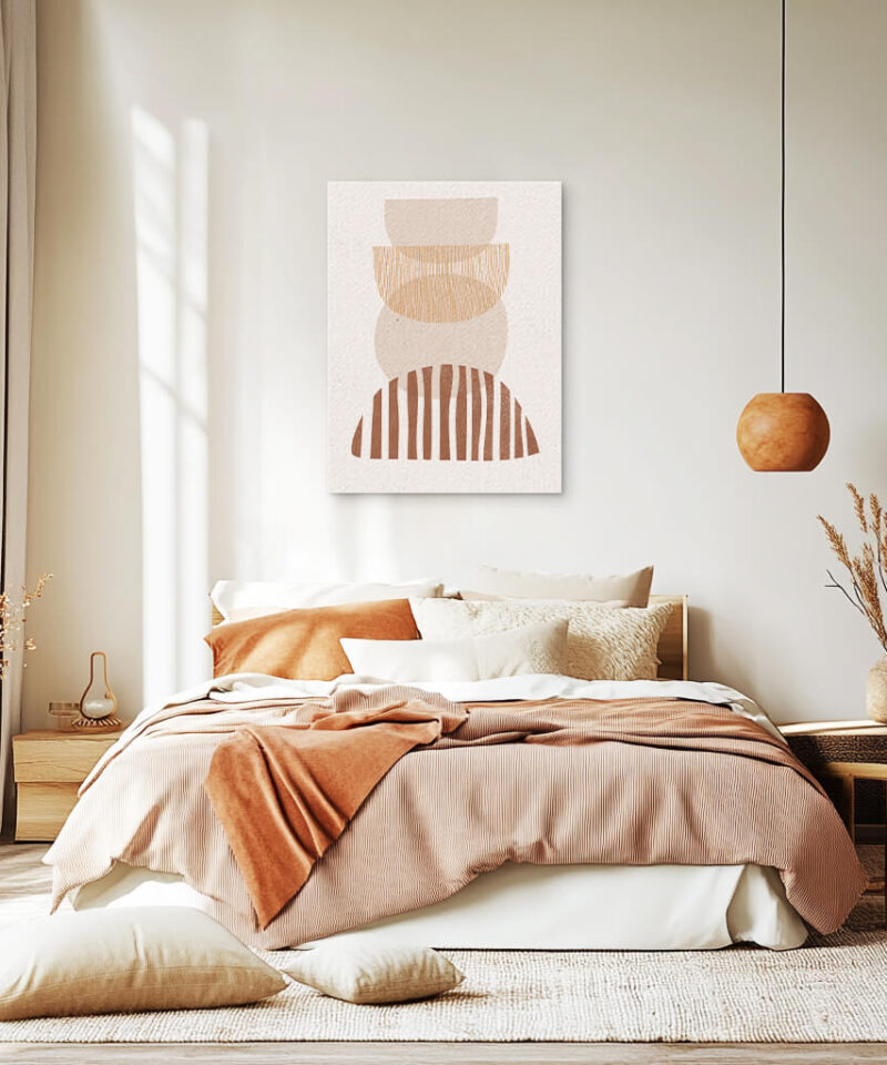 Geometry flows gently in brown hues. This Boho abstraction channels warmth and clarity through repetition and natural arrangement.