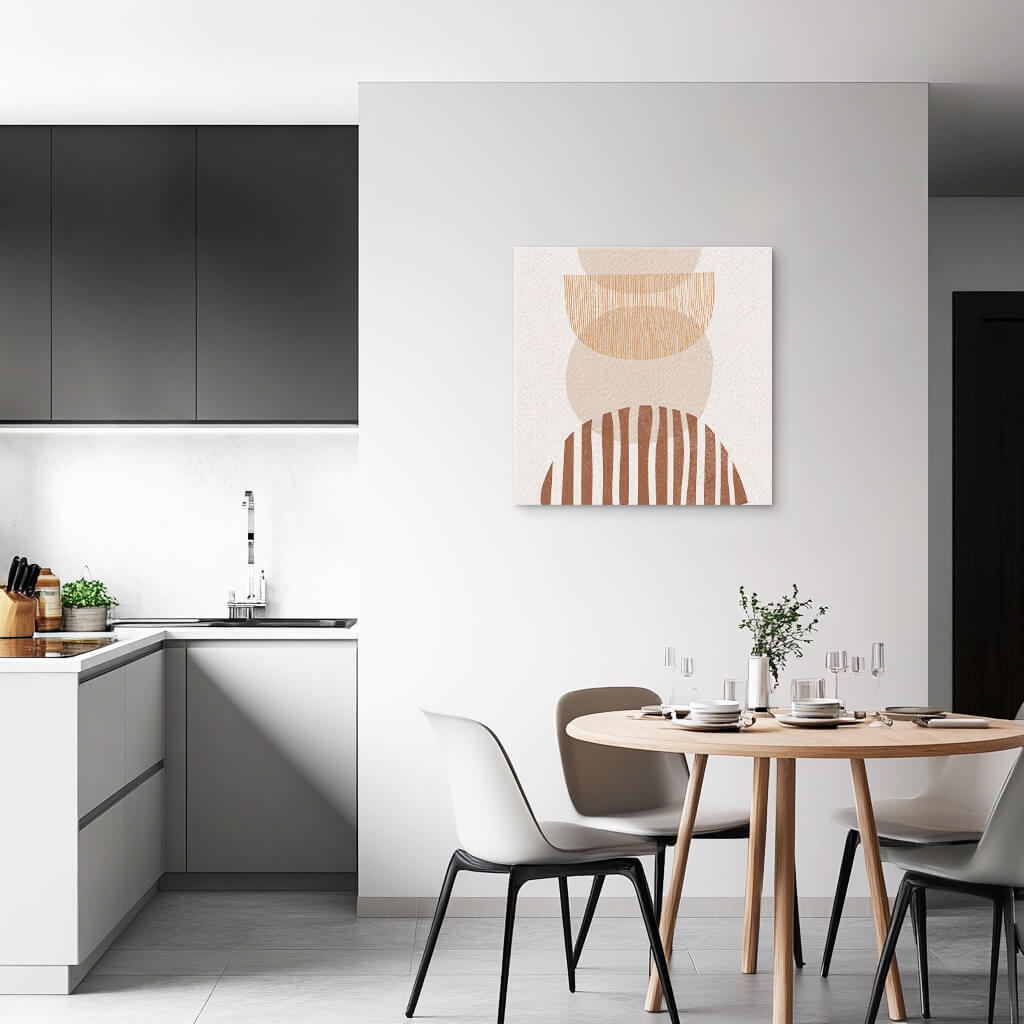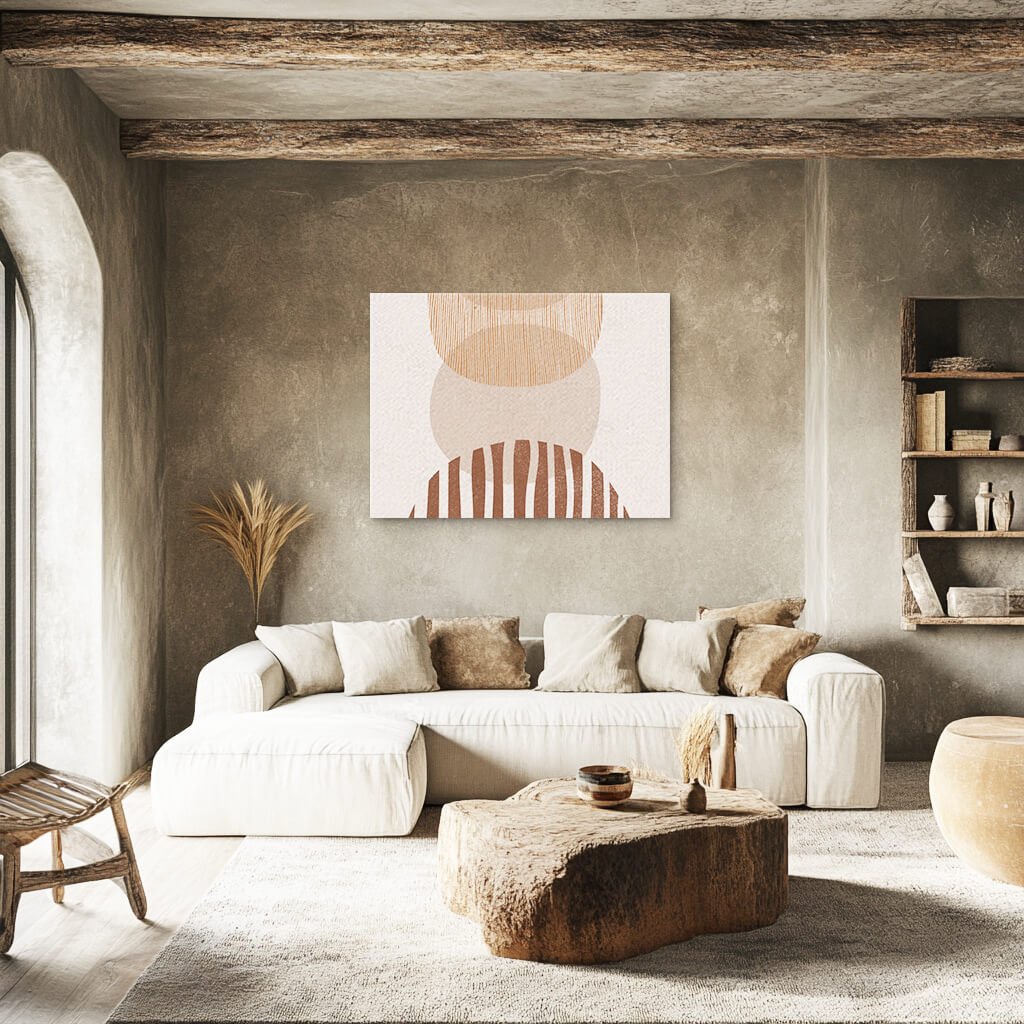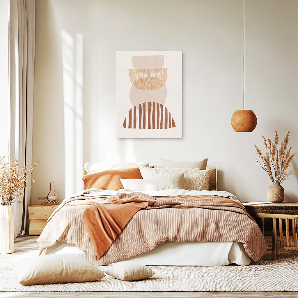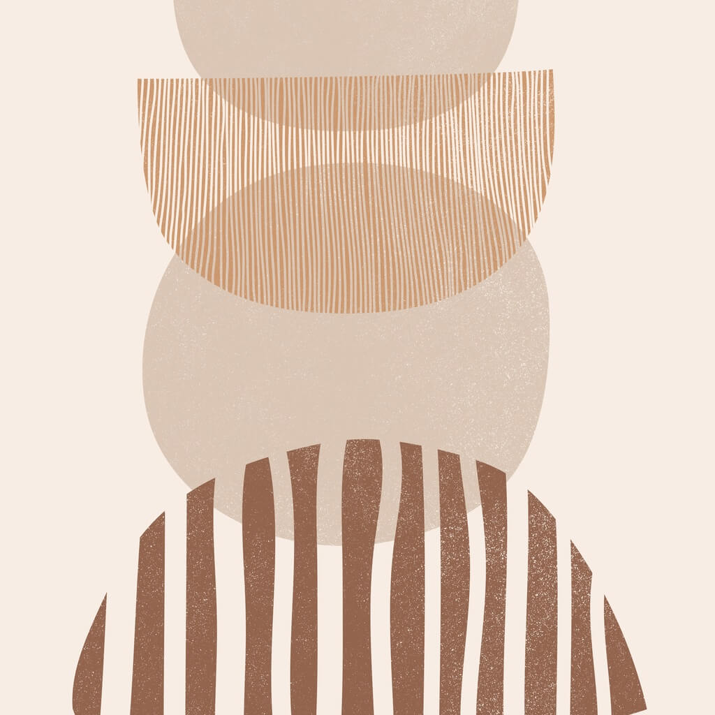 Geometry flows gently in brown hues. This Boho abstraction channels warmth and clarity through repetition and natural arrangement.