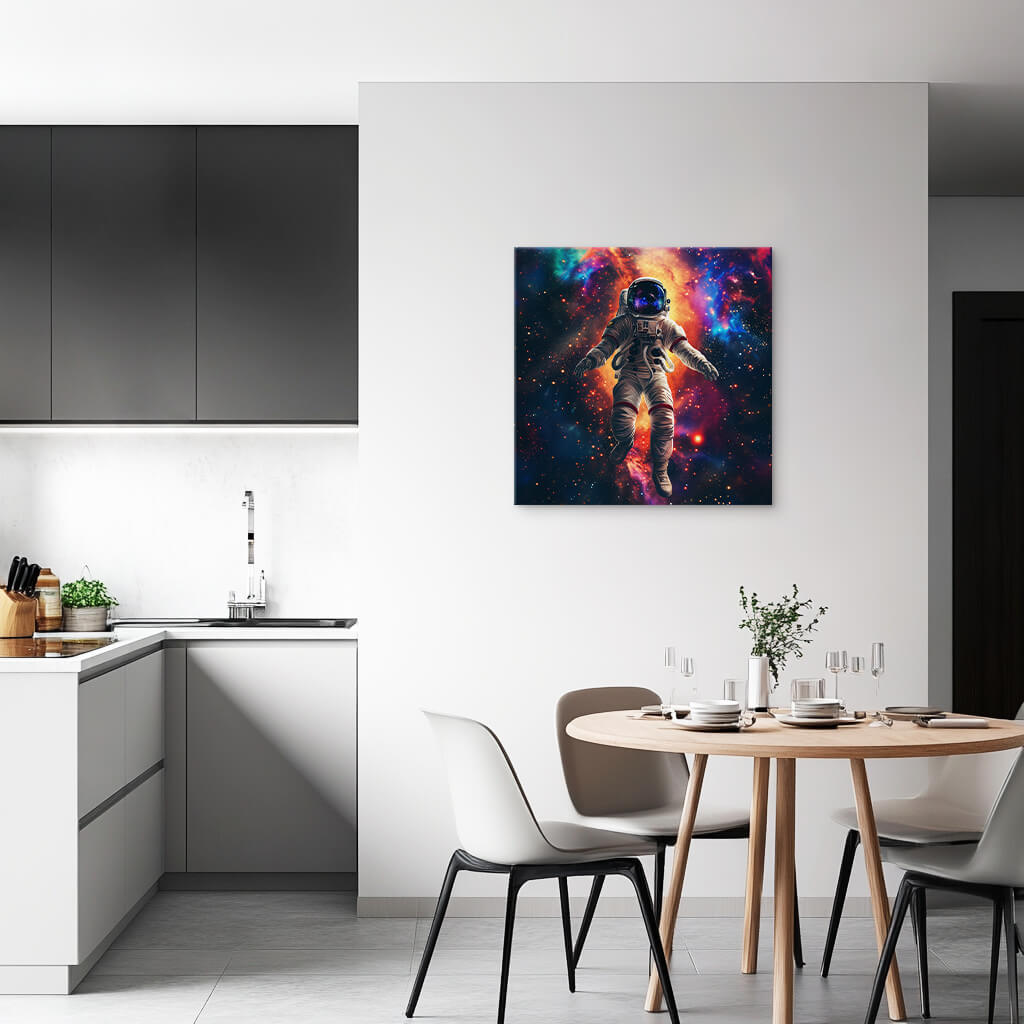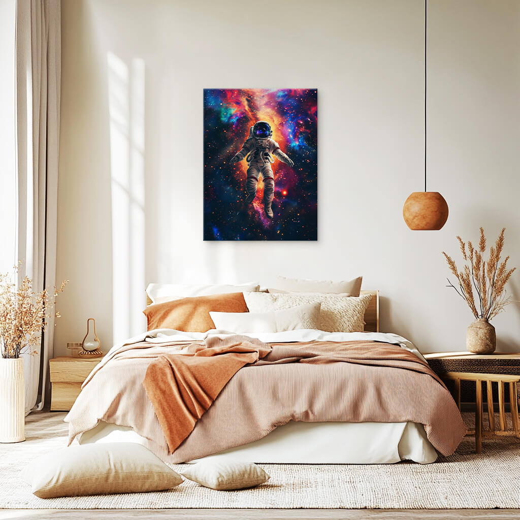 Suspended in the abyss, a lone silhouette floats through the vast unknown. Space does not bind him—it liberates him, his path as infinite as the stars.